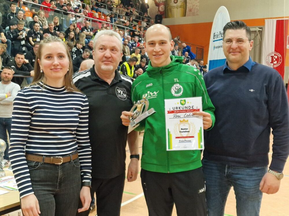 Bei der Endrunde um den Hallenpokal der Freien Presse belegte Merkur Oelsnitz am Sonntag den 5. Platz. Unser Keeper Toni Lohse wurde zum Besten Torhüter und damit ins Allstar-Team gewählt.